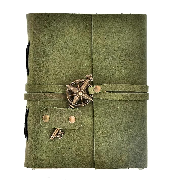 Premium Leather Diary With Metal Key Closure And 100% Recycled Handmade Paper (Green)
