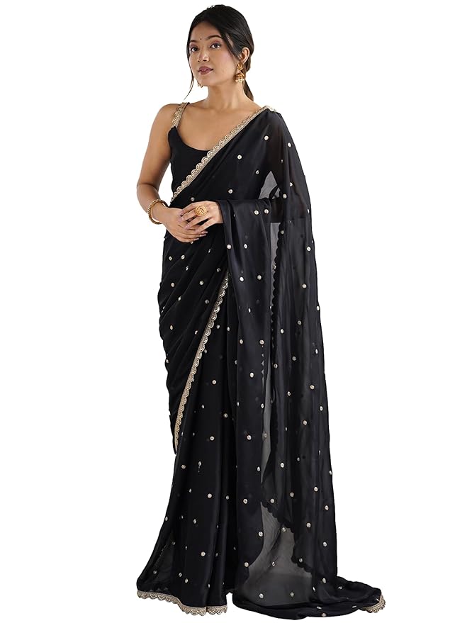 - Work :: Saree : Sequins Embroidery & Scalloped Border || Blouse : Sequins Embroidery & Lace