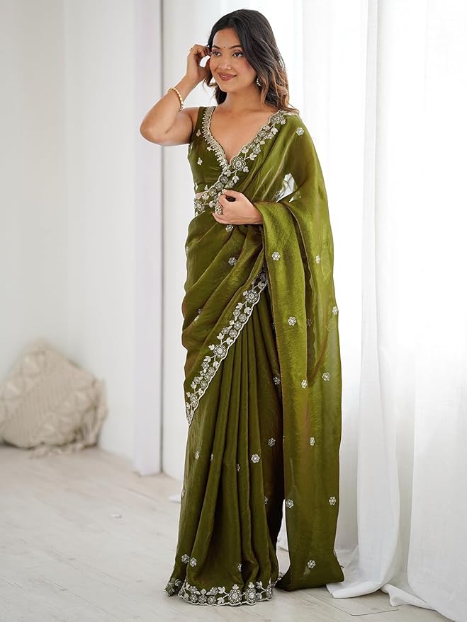 - Color :: Saree Color : Mehndi Green || Blouse Color : Mehndi Green || Disclaimer : Colour Of The Actual Product May Slightly Vary Due To Different Photographic Lighting Sources Or Your Display Color Settings Or Screen Type.